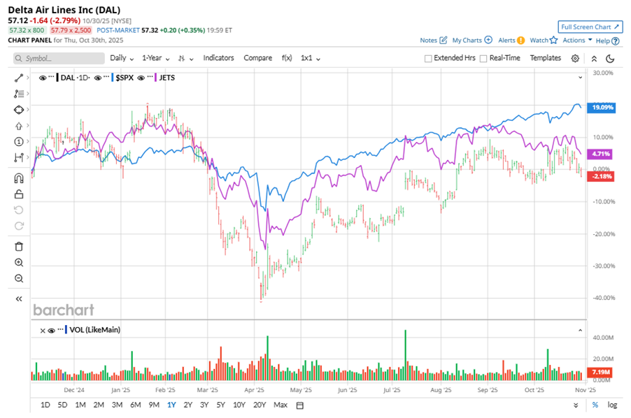Shares of this global airline leader have underperformed the broader market considerably over the past year. DAL has declined 2.3% over this time frame, while the broader S&P 500 Index ($SPX) has rallied nearly 17.4%. In 2025, DAL stock is down 5.6%, compared to the SPX’s 16% gains on a YTD basis.