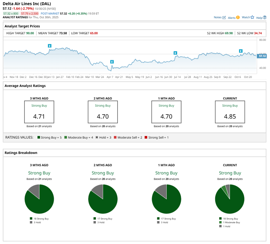 On Oct. 15, Freedom Capital kept a “Buy” rating on DAL and raised the price target to $69, implying a potential upside of 20.8% from current levels.