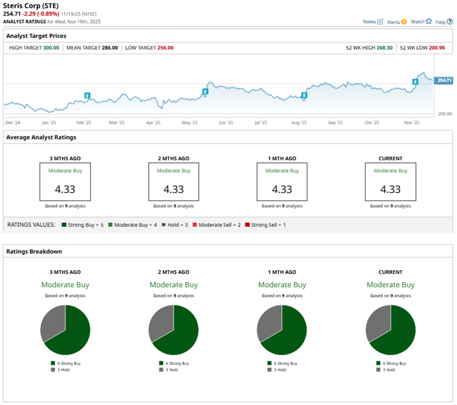 The mean price target of $286 represents a premium of 12.3% to STE's current price. The Street-high price target of $300 suggests a 17.8% potential upside.