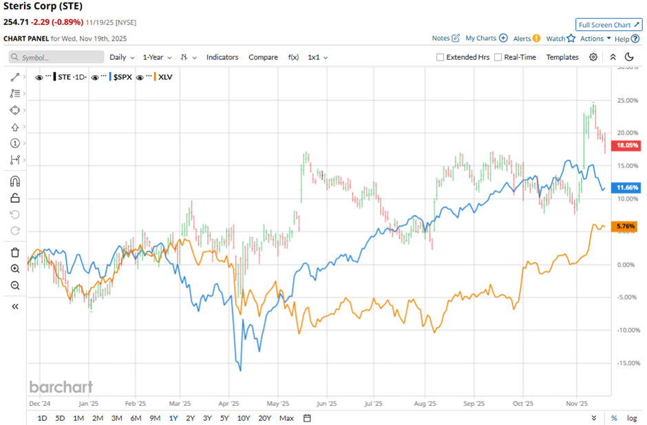 Shares of the Mentor, Ohio-based company have outpaced the broader market over the past 52 weeks. STE stock has returned 20.2% over this time frame, while the broader S&P 500 Index ($SPX) has gained 12.3%. Moreover, shares of the company have soared 23.9% on a YTD basis, compared to SPX's 12.9% rise.