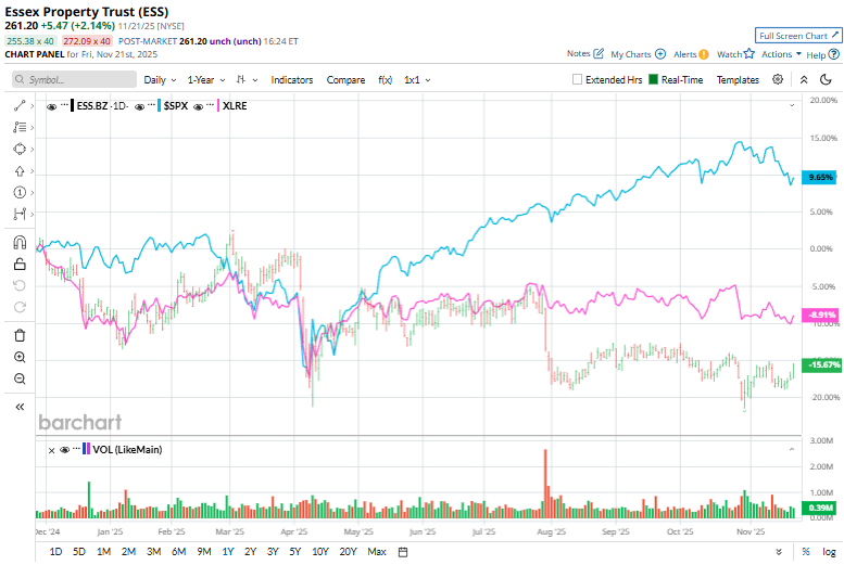 Essex Property Trust’s stock has been stuck in a slump, struggling to find momentum even as parts of the real estate market show signs of life. Over the past 52 weeks, shares have slid 14.2%, and they’re still down 8.5% year-to-date. That performance trails well behind the S&P 500 Index ($SPX), which has gained 11% and 12.3% over the same periods, respectively.