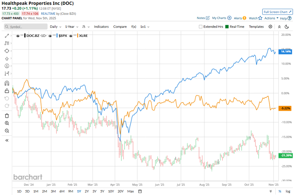 Shares of DOC rose 1.2% following its Q3 2025 results on Oct. 23 as AFFO of $0.46 per share and revenue of $705.9 million surpassed expectations. The company also reported 0.9% year-over-year growth in total merger-combined same-store cash NOI, driven by gains of 2.0% in outpatient medical and 9.4% in CCRC segments. Additionally, Healthpeak reaffirmed its 2025 FFO guidance of $1.81 per share - $1.87 per share.