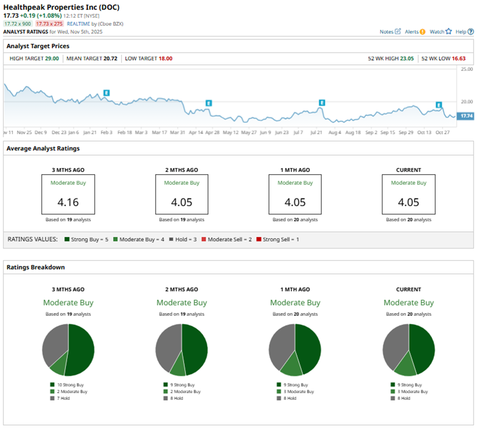 On Oct. 28, RBC Capital’s Michael Carroll reaffirmed a “Buy” rating on Healthpeak Properties and maintained a $21 price target.
