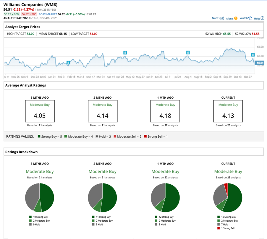Among the 23 analysts covering WMB stock, the consensus is a “Moderate Buy.” That’s based on 13 “Strong Buy” ratings, two “Moderate Buys,” seven “Holds,” and one “Strong Sell.”