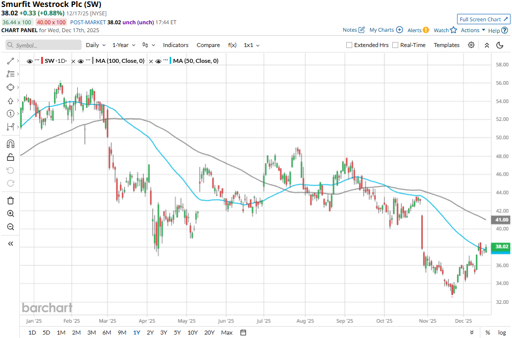 SW stock has traded mostly below its 50-day and 100-day moving averages since early March, with some fluctuations, underscoring its bearish trend.