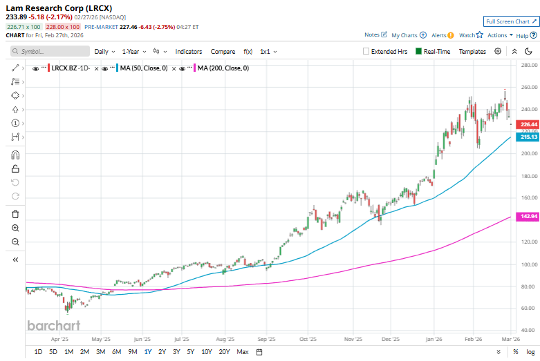 Valued at a market cap of $292.1 billion, Lam Research Corporation (LRCX) is a leading U.S. semiconductor equipment manufacturer that designs and produces wafer fabrication equipment used in the production of integrated circuits. Headquartered in Fremont, California, Lam specializes in critical process steps, especially etch and deposition, used by advanced logic and memory chipmakers worldwide.