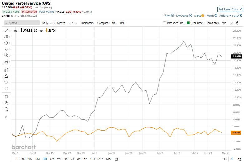 This freight and logistics company is currently trading 6.3% below its 52-week high of $123.70, reached on March 10, 2025. Shares of UPS have gained 21.2% over the past three months, exceeding the S&P 500 Index’s ($SPX) marginal rise.