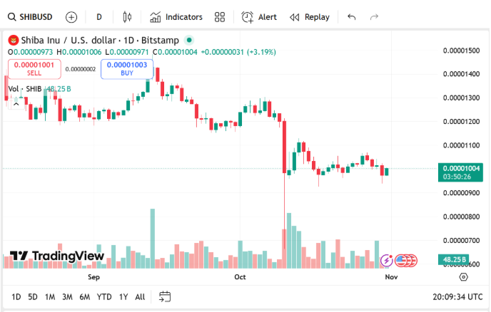 As of this writing, SHIB is trading at $0.00001001, up 4.2% over the last day, with a market value of $5.83 billion and a trading volume of $171.77 million, up 27.25%.