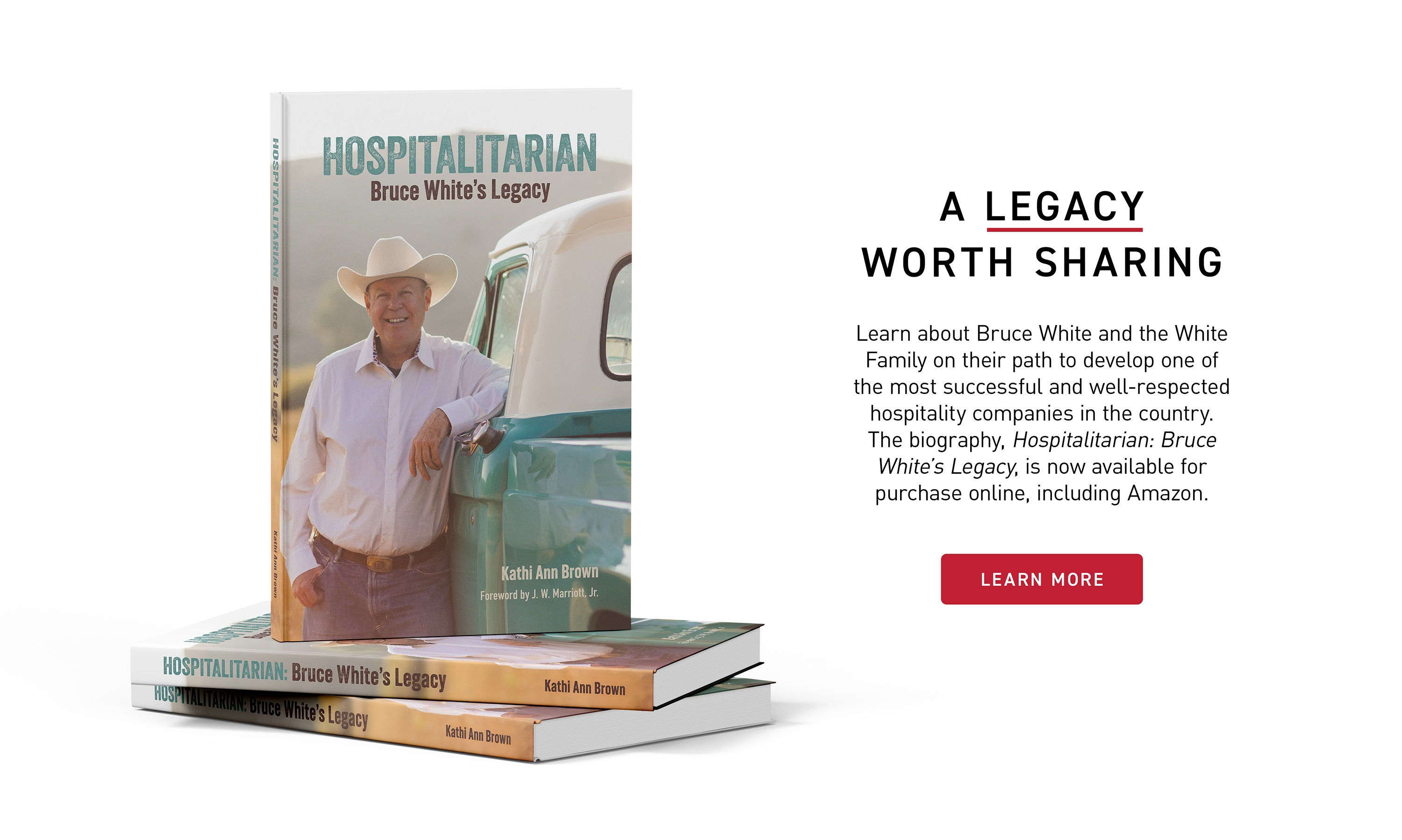 Hospitalitarian: Bruce White’s Legacy documents and shares the stories that built White Lodging from a small hospitality company into a player on a national scale. The biography was researched and authored by Kathi Ann Brown, who is the co-author of two books with Chairman Emeritus of Marriott International J.W. ‘Bill’ Marriott, Jr., including Spirit to Serve and Without Reservations.